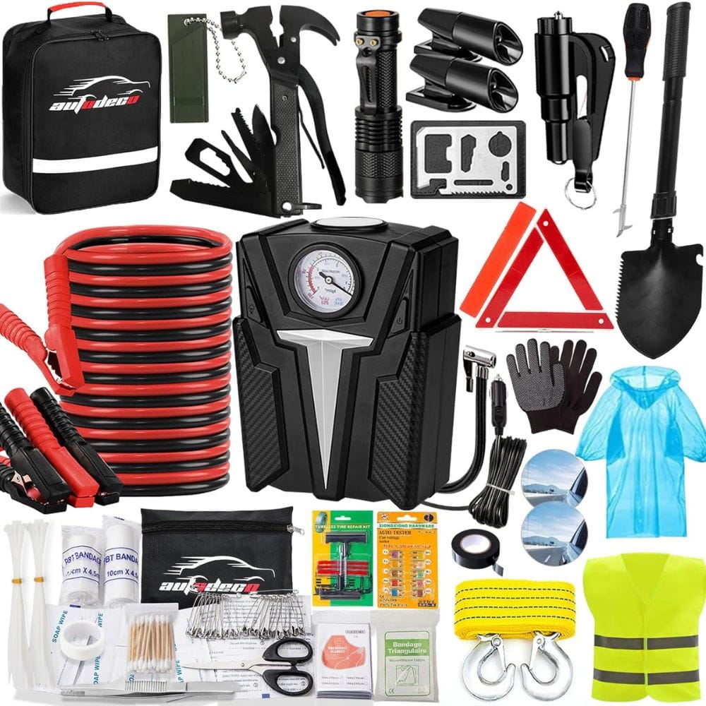 The Autodeco Roadside Car Emergency Kit is a comprehensive solution for drivers who want to be prepared for almost any situation. This kit includes 136 pieces, covering everything from a first aid kit to a tire repair kit. The inclusion of a high-quality air compressor and a multi-functional shovel makes it a versatile choice for various emergencies.