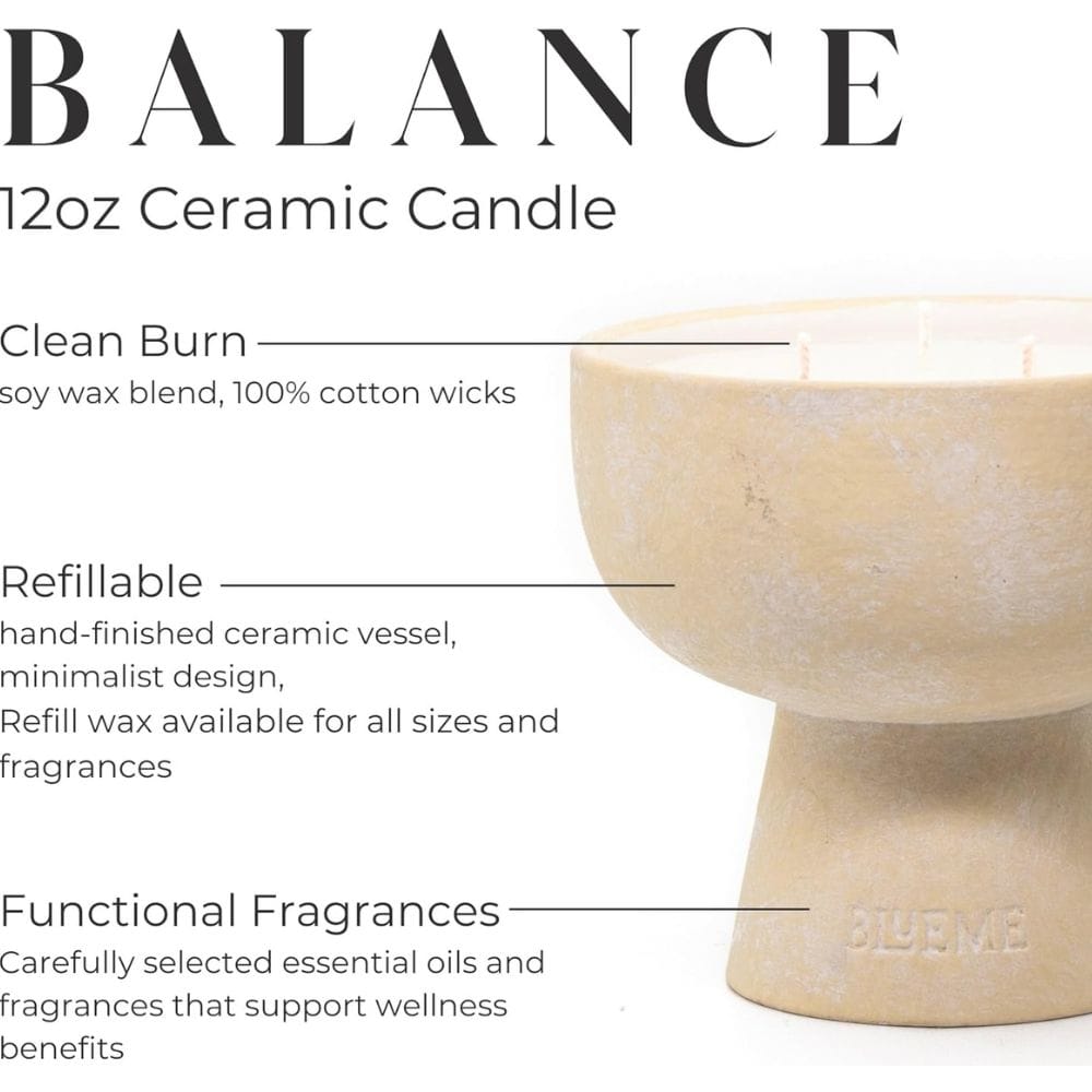 Blueme Candles are known for their minimalist design, which is both elegant and functional. Their commitment to sustainable packaging further enhances the appeal of their products, ensuring that each purchase is environmentally responsible. The ceramic vessels used for the Blueme Balance Wellness Candle are a perfect example of this design philosophy. These vessels are not only aesthetically pleasing but also sustainable, aligning with Blueme’s commitment to sustainability.