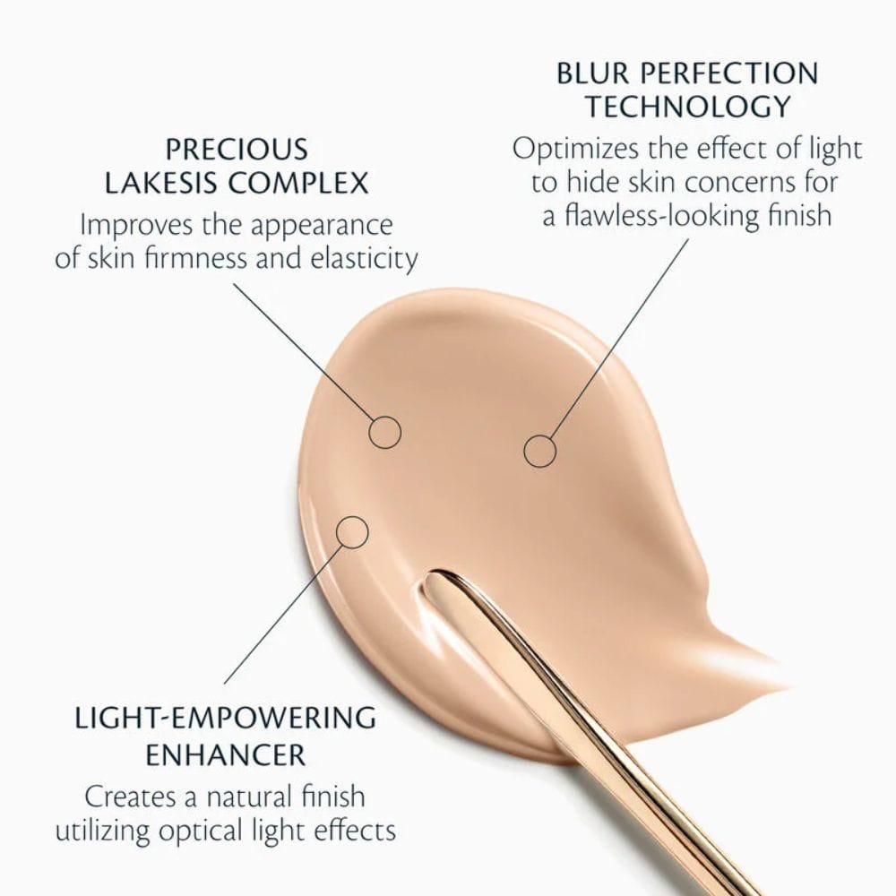The Foundation SPF 22 is an ultra-luxurious, weightless foundation infused with skincare ingredients that instantly blurs and camouflages for an even-toned, radiant finish that lasts up to 24 hours. This ultimate age-defying foundation features Blur Perfection Technology that optimizes the effect of light to blur skin concerns for a lustrous, flawless-looking finish. With its luxuriously rich yet lightweight cream that melts on contact with skin to moisturize, plump, and protect, this foundation is perfect for those seeking a high-quality, long-lasting base that promotes firmness and reduces the appearance of fine lines and wrinkles.