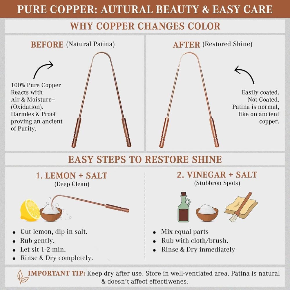 Maintaining good oral hygiene is crucial for overall health. Poor oral hygiene can lead to a host of problems, including bad breath, gum disease, and even systemic health issues. Copper tongue scrapers can help eliminate bad breath by removing the bacteria that cause halitosis. Incorporating a tongue scraper into your daily routine can significantly enhance your oral care hygiene efforts. By removing the coated layer of bacteria and dead cells from your tongue, you not only improve your breath but also experience improved confidence as a result of better oral care hygiene.