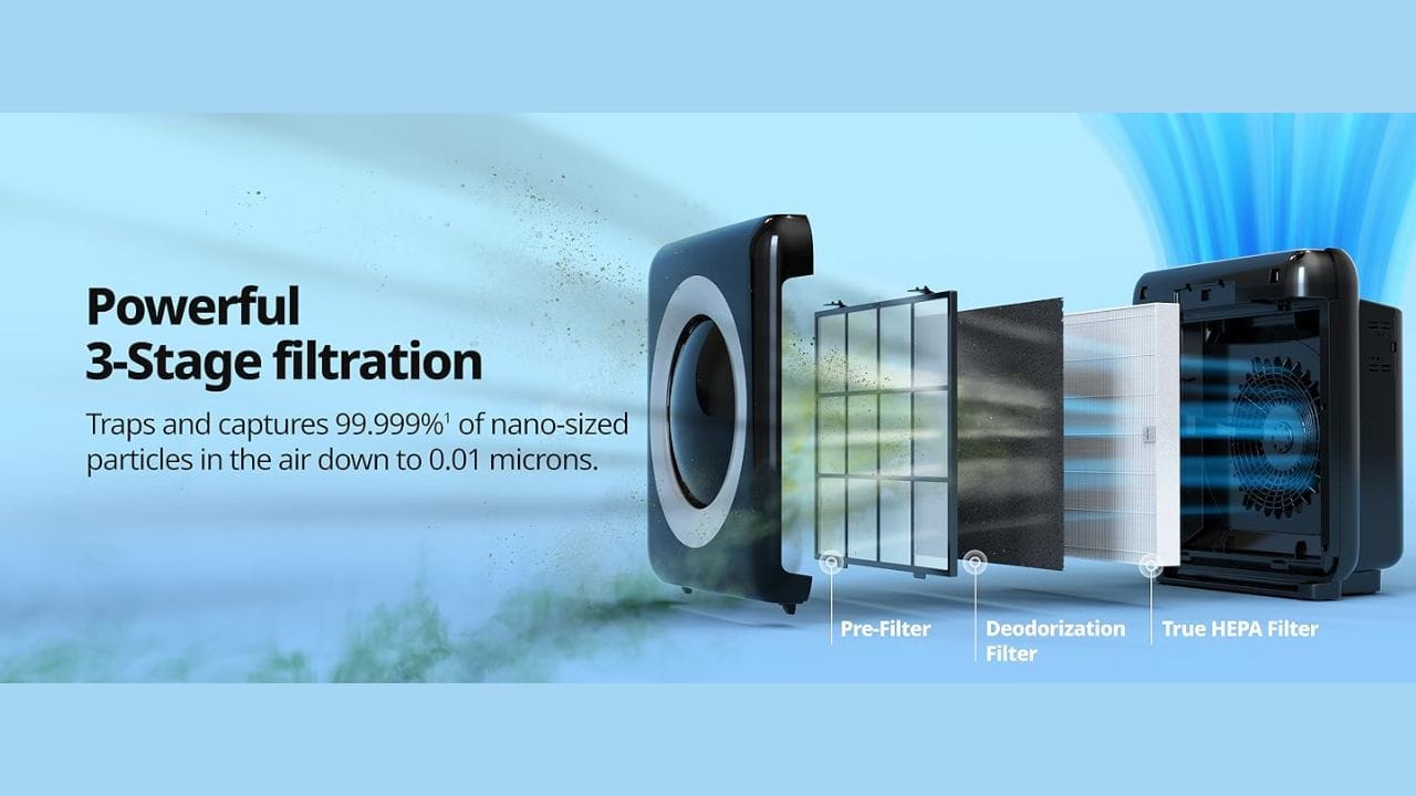 As part of the class of HEPA air purifiers, the Coway Airmega offers high filtration efficiency, capturing ultrafine particles and improving indoor air quality. The Coway Airmega AP-1512HH uses air-based filtration technology to enhance the air in your home. The HEPA filter is particularly effective in removing harmful particles, boasting a high particle removal rate that makes it ideal for allergy sufferers. Coway Airmega filters capture 99.97% of 0.3-micron particles, and the HyperCaptive™ filtration system removes 99.999% of ultra-fine particles as small as 0.01 microns. Some Coway Airmega models also feature an ionizer to help clump airborne particles for more effective filtration. The activated carbon filters work in tandem to eliminate odors and volatile organic compounds, making your living environment more pleasant. Coway Airmega air purifiers can remove allergens such as dust, pollen, pet dander, and viruses, including SARS-CoV-2. This combination of filters ensures that the Coway Mighty is one of the best air purifiers for maintaining a healthy indoor atmosphere.
