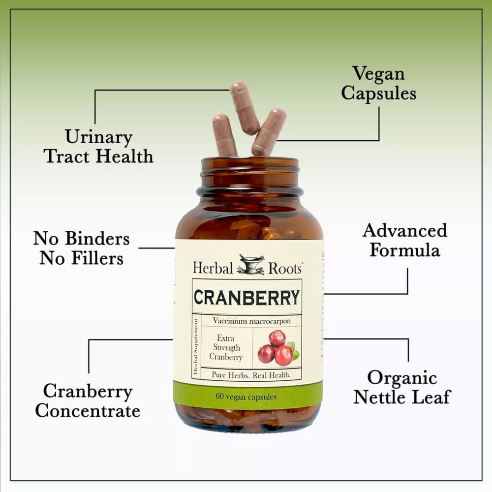 Herbal Roots Cranberry Supplement is another top contender in the world of cranberry pills for women. This supplement combines cranberry concentrate with organic nettle leaf powder, offering a unique blend that enhances its effectiveness.