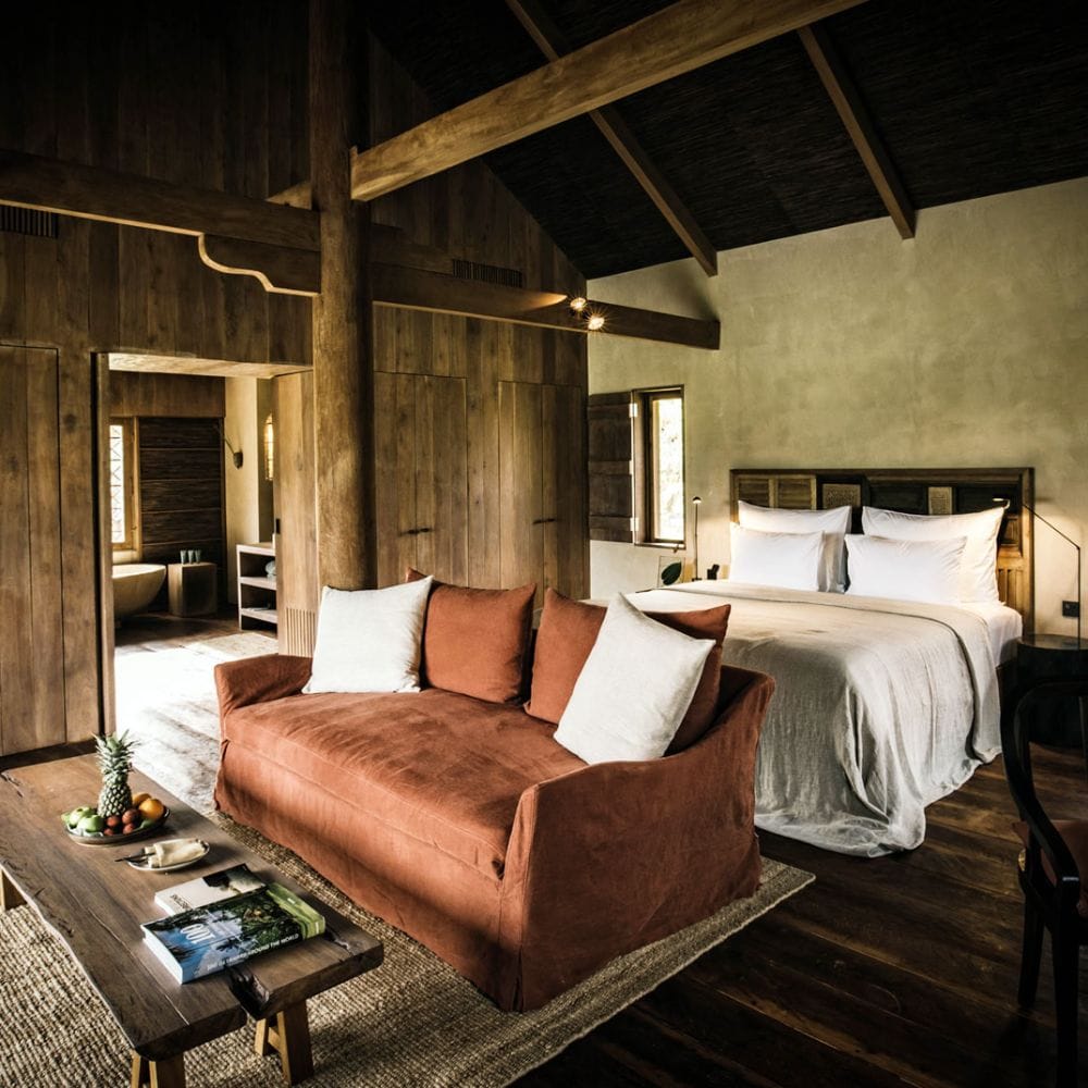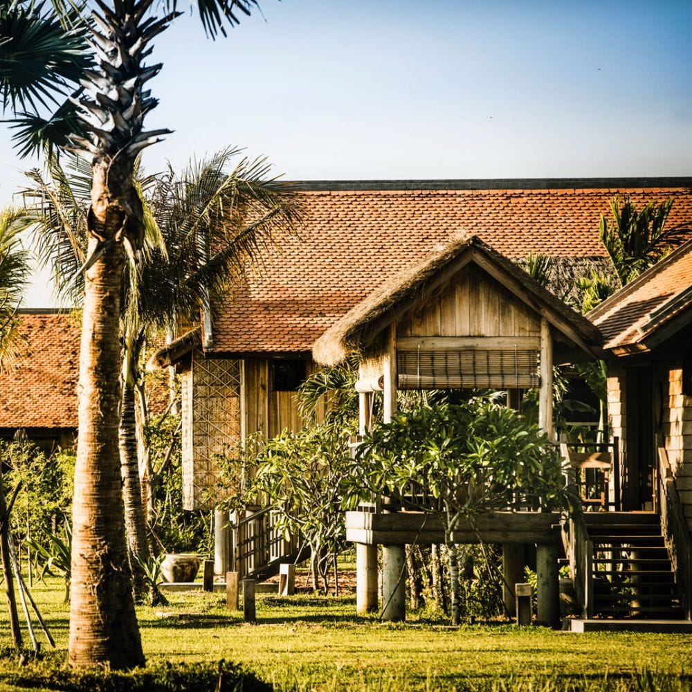 The villas at Zannier Phum Baitang are built on stilts and decorated with handpicked local antiques, immersing guests in authentic Cambodian heritage.