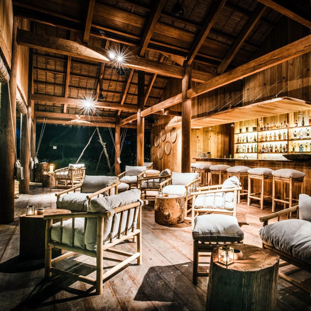 As the day draws to a close, guests can head to the Sunset Lounge, one of the resort's signature bars, set in a century-old farmhouse that offers a unique atmosphere for guests. The lounge provides a relaxed setting with comfortable seating and stunning views of the rice paddies, making it the perfect spot to unwind after a day of exploring or simply to enjoy a quiet evening with loved ones.