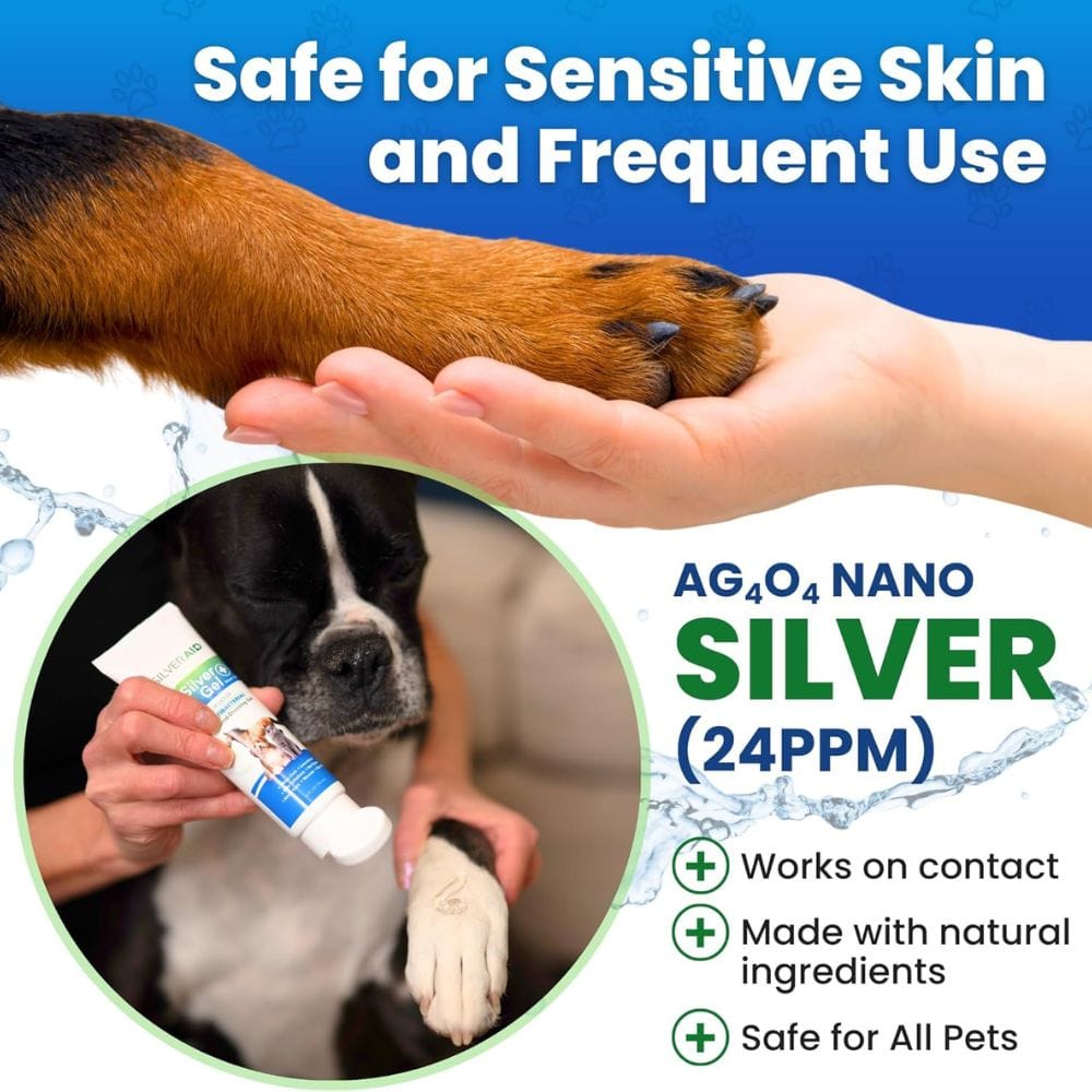 SilverAid Hot Spot Gel is a specialized dog wound care solution designed to treat various skin issues, including hot spots, abrasions, and minor cuts. This gel is pet-safe and contains ingredients that help to soothe and heal the affected area. Its formulation is designed to penetrate the skin layers, providing deep relief and protection.