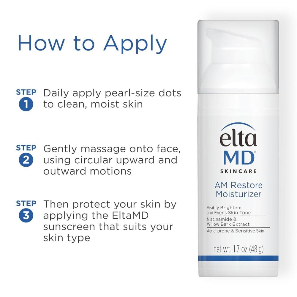 - EltaMD AM Restore Face Moisturizer is a powerhouse for dry or damaged skin, offering natural skin exfoliation and smoother skin texture. The EltaMD AM Restore Moisturizer is also enriched with aging sodium hyaluronate, which helps in hydrating, smoothing, and improving the skin's texture.