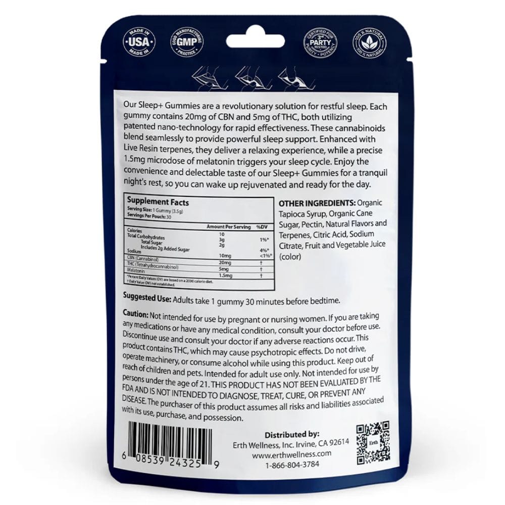 - ERTH Wellness Sleep+ Gummies combine CBN, THC, and live resin terpenes for a holistic nighttime experience.