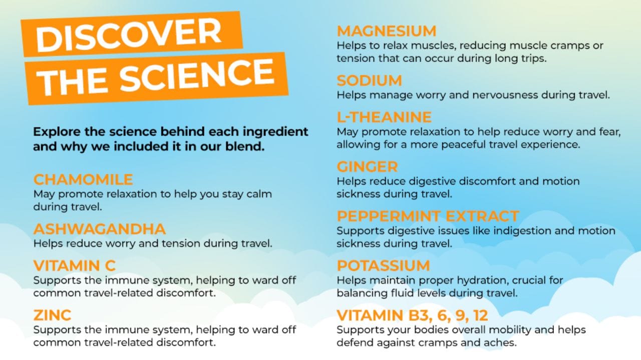 FlyWell Travel Vitamin Tonic is backed by scientific research that highlights the importance of hydration and nutrient support during air travel. This scientific backing ensures that each ingredient is chosen for its proven effectiveness. The tonic contains a strategic mix of electrolytes and vitamins that work together to support fluid balance and promote overall health. This is particularly crucial for long-haul flights, where dehydration can lead to increased fatigue and discomfort.