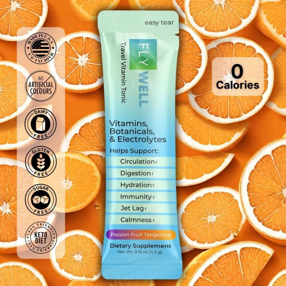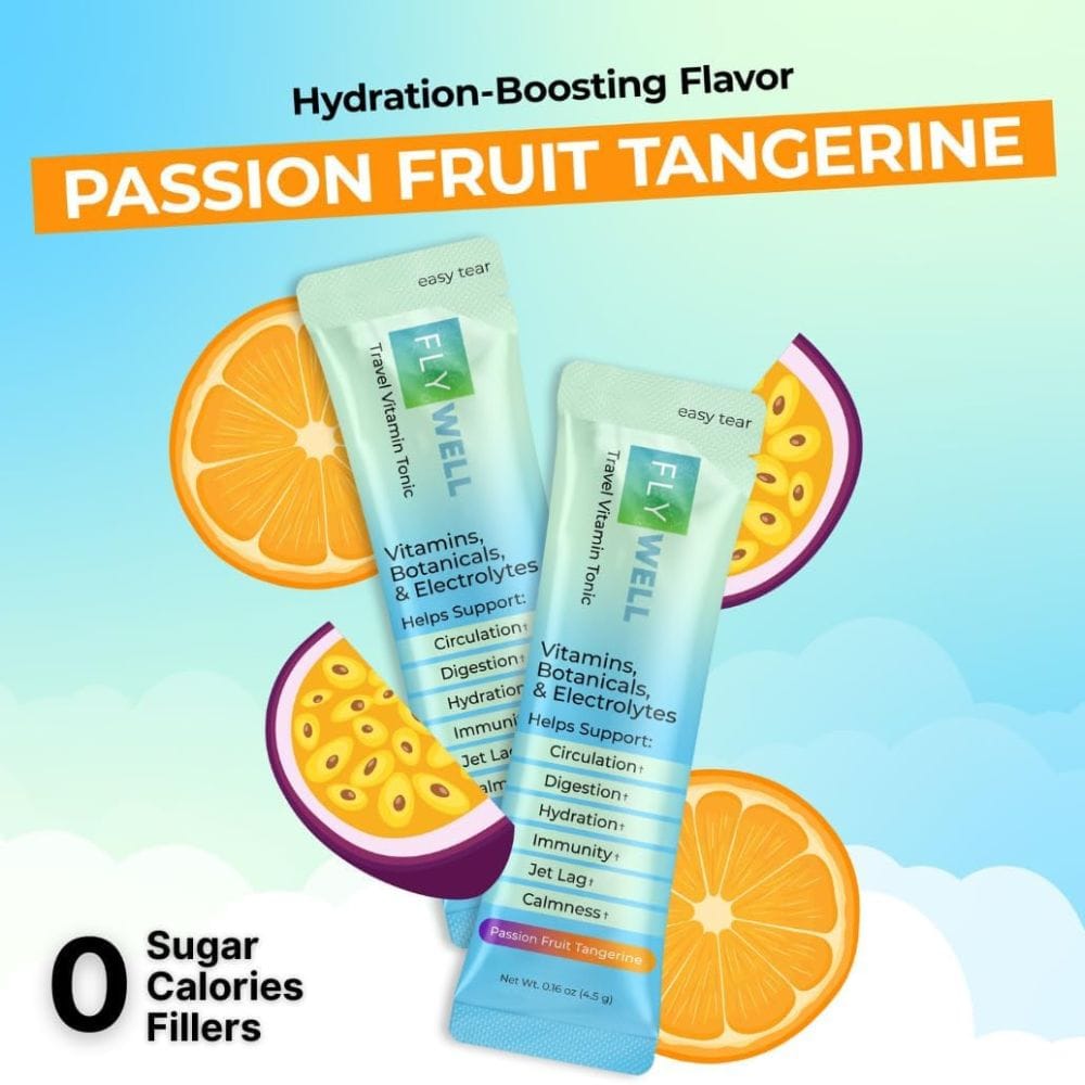 3. What flavors does FlyWell offer?FlyWell Travel Vitamin Tonic is available in a refreshing passion fruit tangerine flavor, making hydration enjoyable during your travels.