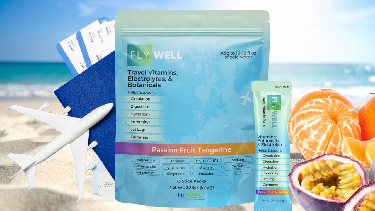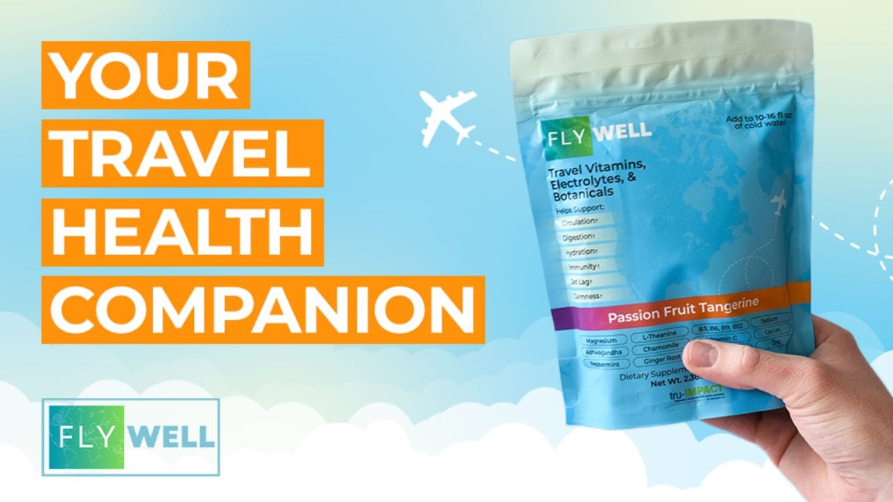 - FlyWell offers comprehensive support for hydration, immunity, relaxation, digestion, and circulation in a single TSA-friendly packet.