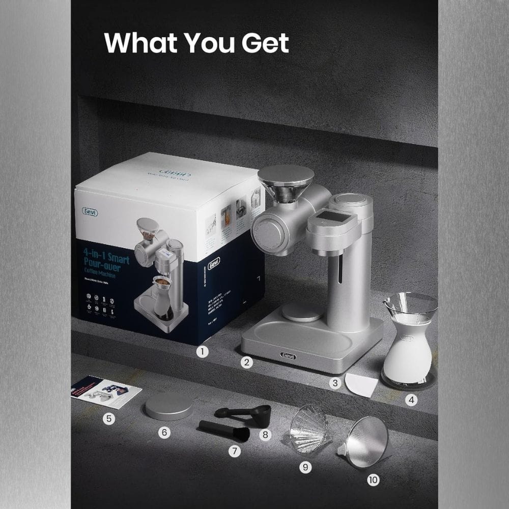 - The Gevi 4-in-1 Smart Pour-Over Coffee Machine offers a comprehensive coffee-making experience with its built-in grinder, fast heating, and multiple brewing options.