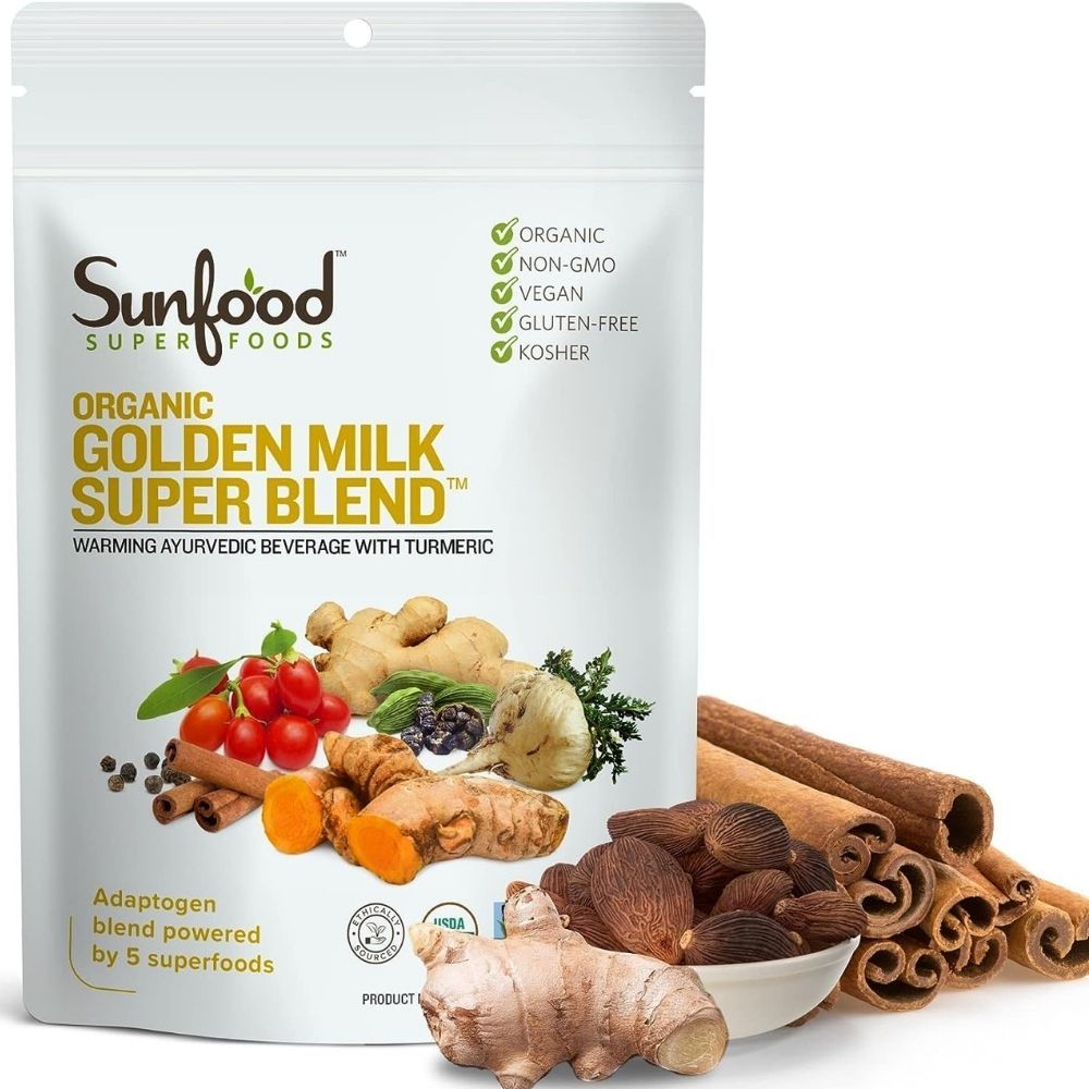 Sunfood prides itself on providing high-quality, clean ingredients. This Golden Milk Super Blend is gluten-free, vegan, non-GMO, and made from all organic ingredients.