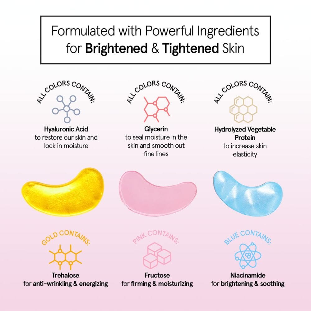 The Grace & Stella Under Eye Mask is a luxurious eye mask designed to deliver hydration, brightening, and plumping benefits to the delicate under-eye area. Crafted from hydrogel, a soft and flexible material, these masks are gentle on the skin, making them perfect for those with sensitive skin. Infused with hyaluronic acid and glycerin, they work to lock in moisture and soothe dry skin, ensuring your under-eye area remains hydrated and refreshed.