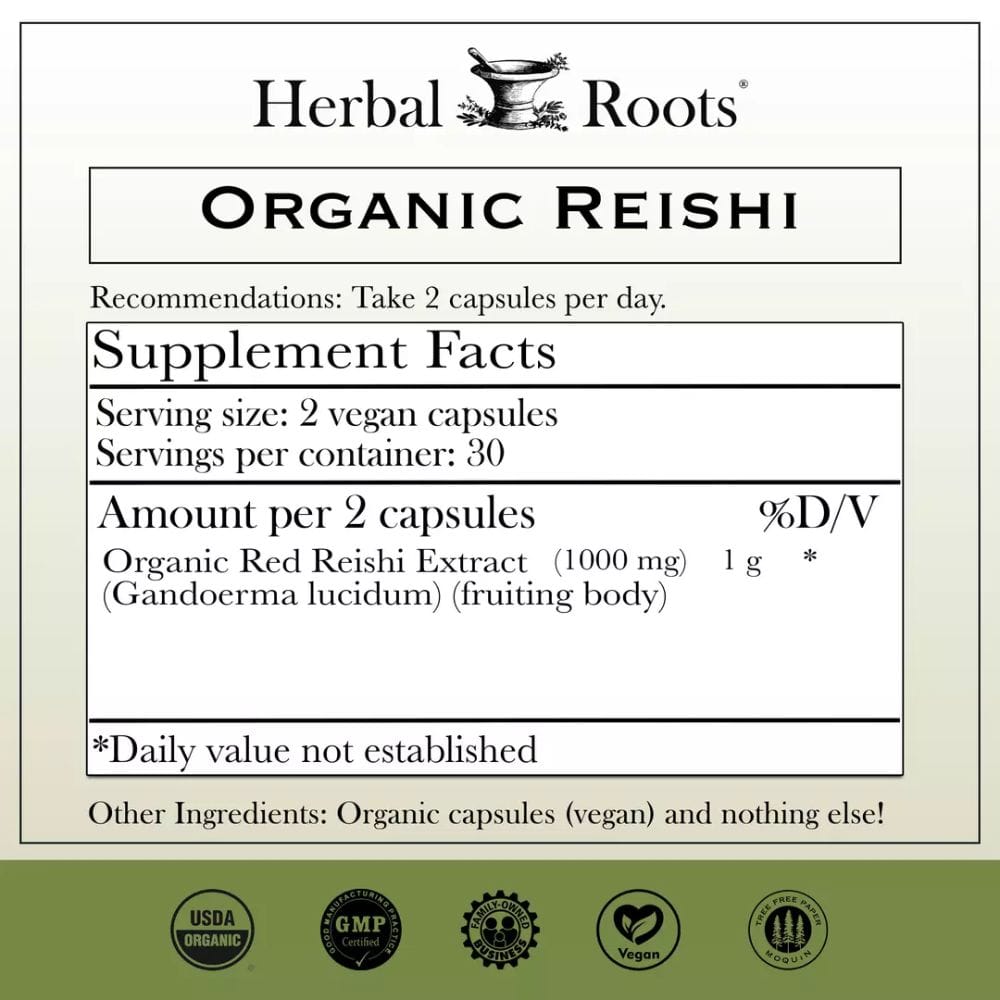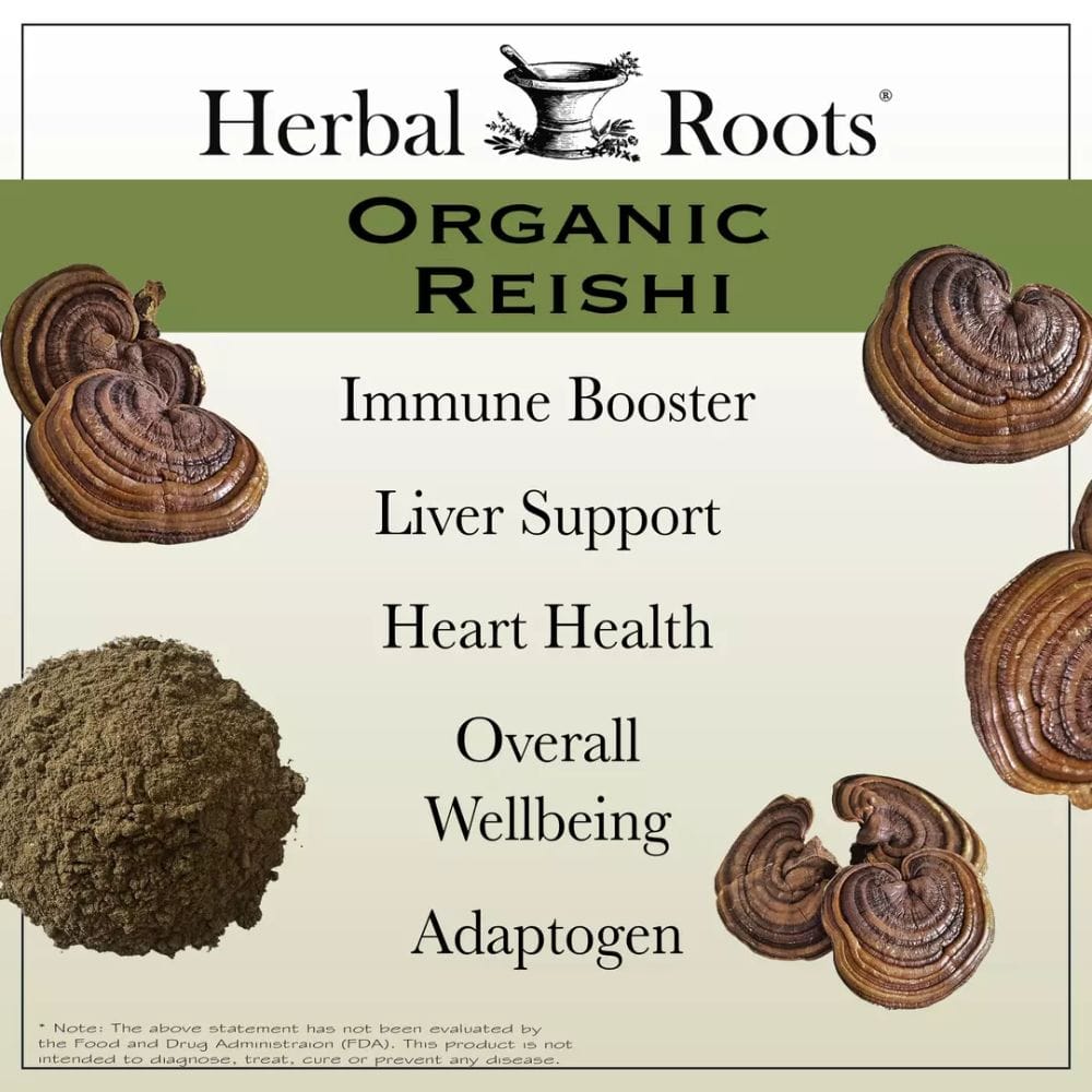 - Herbal Roots Organic Reishi Mushroom Supplement is a powerhouse of health benefits, promoting longevity and vitality.