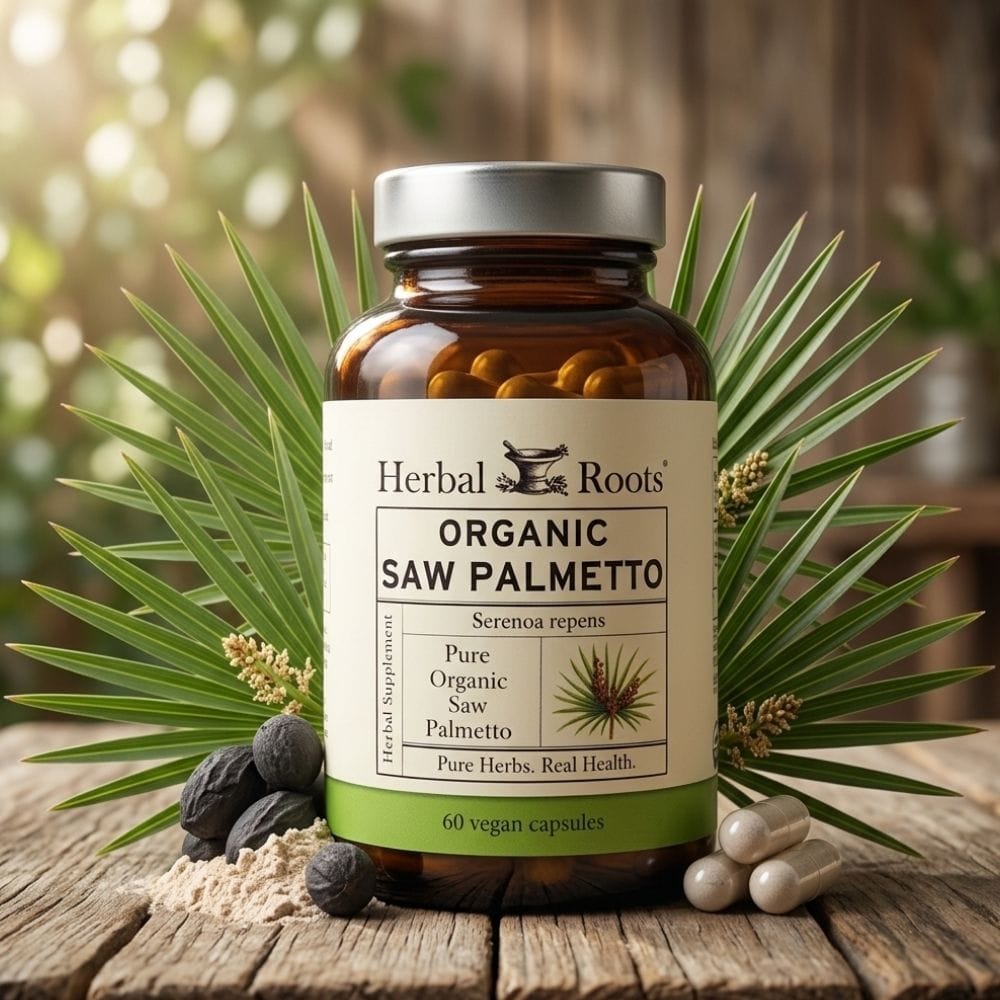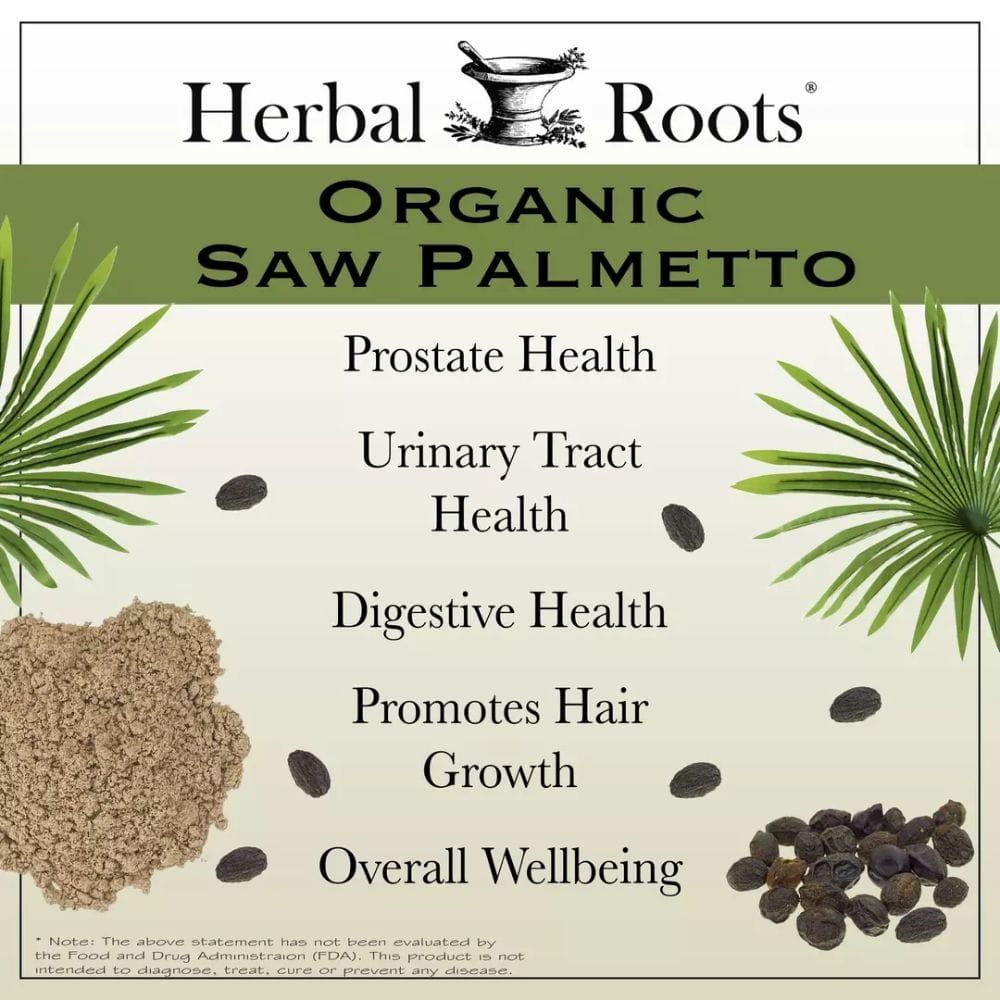 - Herbal Roots Organic Saw Palmetto is a natural supplement that supports prostate health and urinary function.
