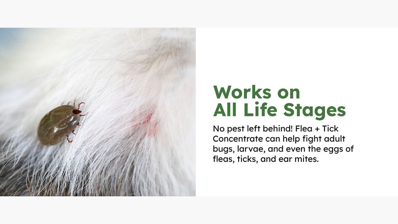 - Comprehensive Pest Control: BugMD Flea and Tick Concentrate is designed to work on all life stages of fleas and ticks, including adults, larvae, and eggs.