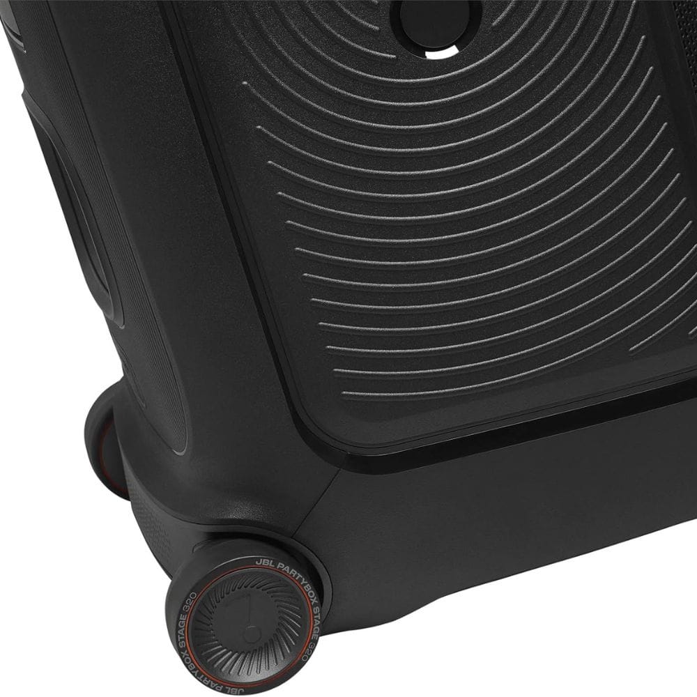 When you first lay eyes on the JBL PartyBox 320, it’s like spotting a beacon of sound ready to transform any room into a lively club. This portable party speaker is not just about looks; it’s a robust piece of technology that promises to deliver high volumes and clear sound. The design is sleek, with a sturdy build that feels like it can withstand the wildest of parties. The JBL PartyBox Stage 320 features a swappable battery and enhanced portability with wheels and a handle. The wheels and handle make it easier to transport, ensuring that the party can follow you wherever you go.