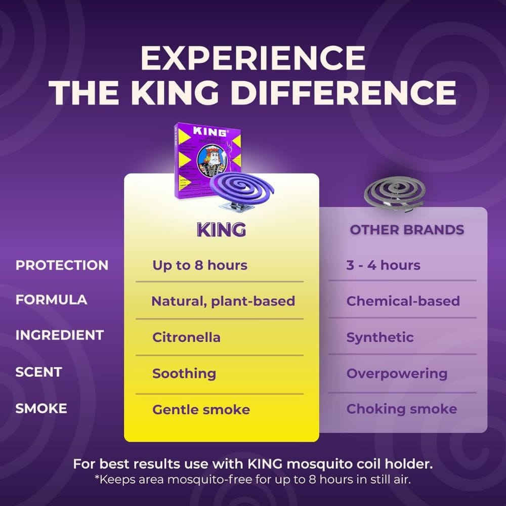 - King Mosquito Coils offer effective protection against mosquitoes and flies, making them ideal for outdoor use.