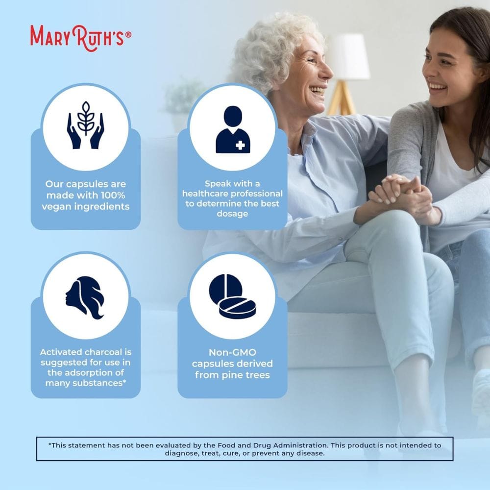 Activated charcoal, the key ingredient in MaryRuth’s Charcoal Capsules, offers more than just detoxification—it can also help support your immune system. By adsorbing and removing toxins and unwanted substances from the body, activated charcoal helps reduce the workload on your immune system, allowing it to function more efficiently. Its antioxidant properties may also help protect your cells from damage, further promoting overall health. MaryRuth’s Charcoal Capsules can be especially helpful when you’re experiencing gas, bloating, or after eating suspect food. However, it’s essential to consult a healthcare professional before using any dietary supplements, particularly if you are taking medications or other supplements, to ensure safe and effective use tailored to your individual needs.