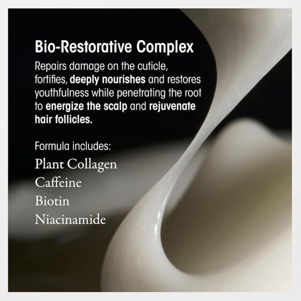 Benzoic acid and sodium benzoate are used as preservatives to enhance product stability and extend shelf life. Tocopheryl acetate acts as an antioxidant, nourishing and protecting hair. The Bio-Restorative Complex features plant collagen, biotin, niacinamide, and caffeine as key components for comprehensive hair repair.