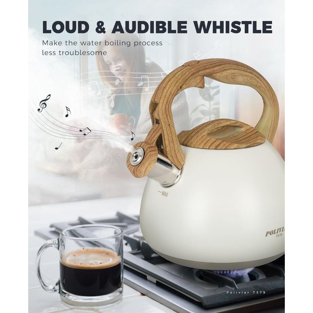 The kettle also features a whistling mechanism that signals when the water has reached boiling point. The whistle is effective without producing excessive noise, so you’ll be alerted without being disturbed by loud sounds. This is a handy feature, especially if you’re multitasking in the kitchen. You won’t have to keep an eye on the kettle; the whistle will let you know when it’s time to pour. The quality of workmanship ensures the kettle performs reliably and efficiently, making the Poliviar kettle a great value for anyone looking to enhance their brewing experience.