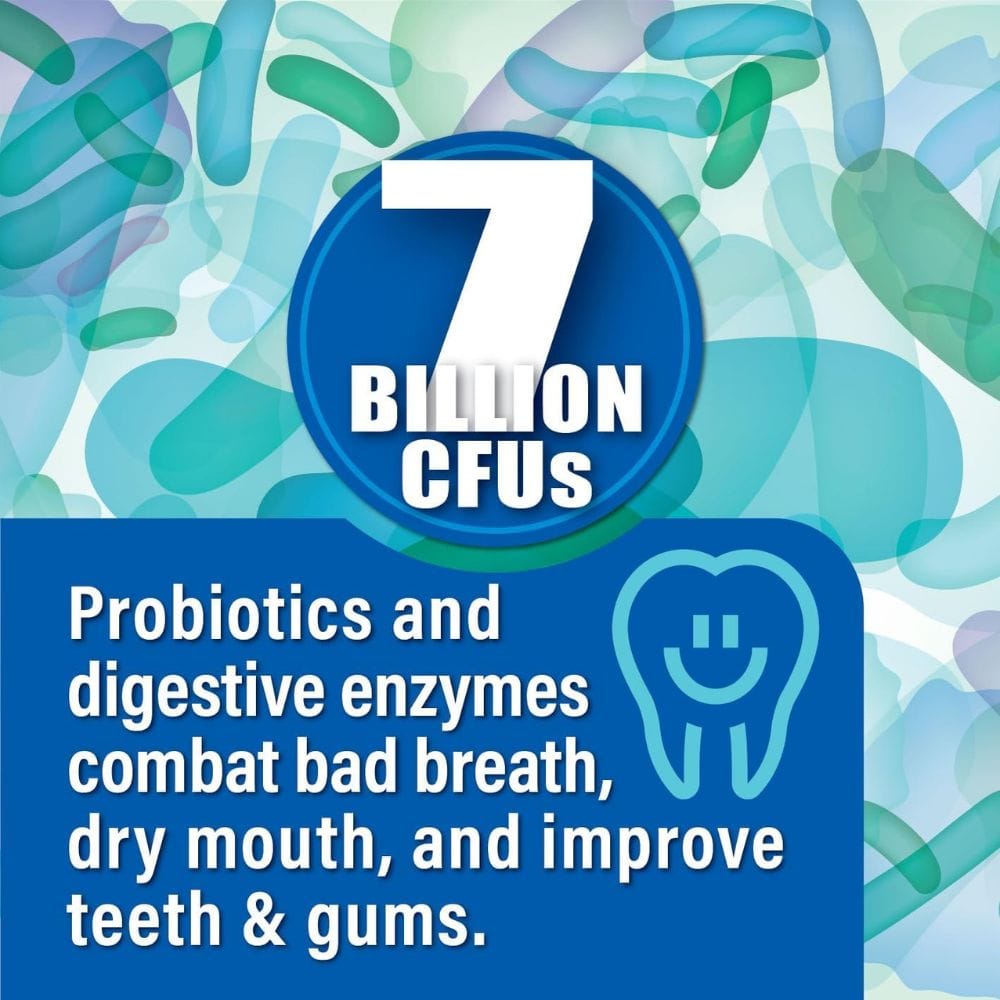 - The product is packed with beneficial bacteria strains like Lactobacillus acidophilus and Lactobacillus reuteri, which support fresh breath and healthy teeth.