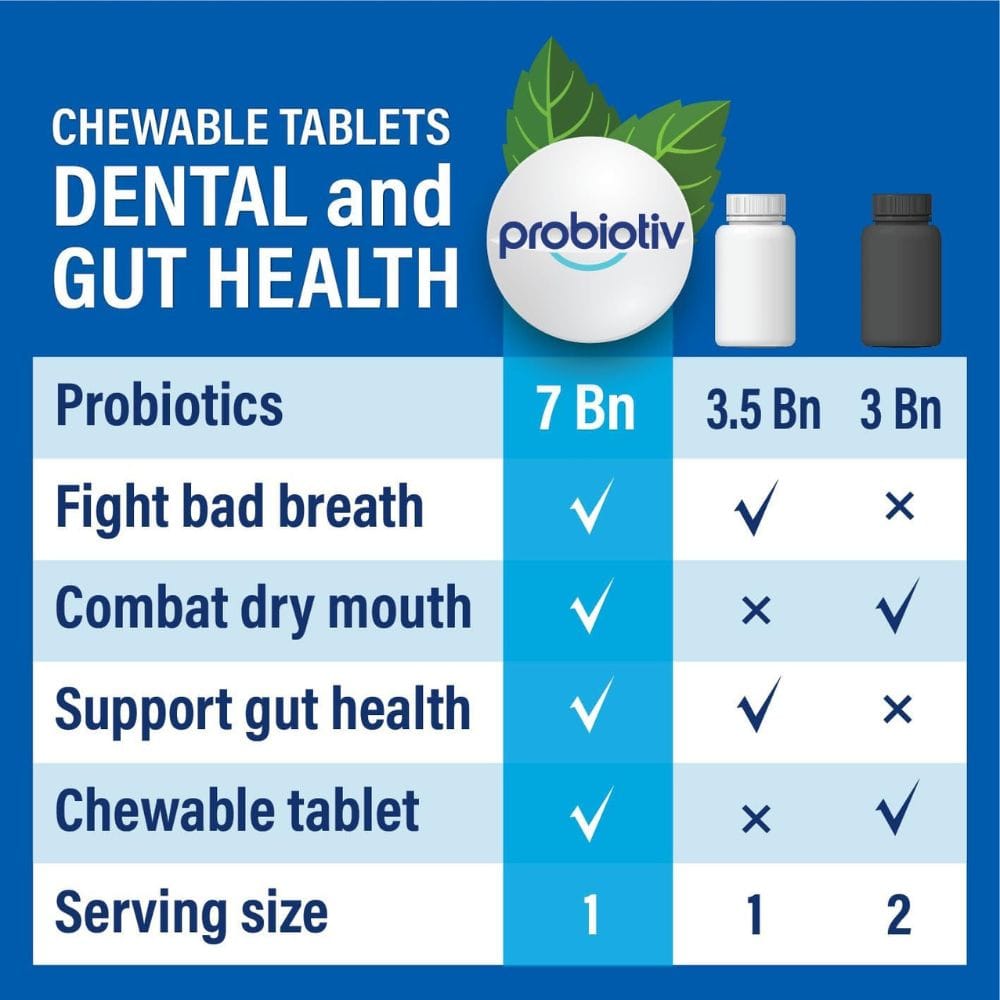 Lactobacillus acidophilus and Lactobacillus reuteri are two of the most important probiotic strains in Probiotiv Oral Probiotic. These strains are known for their ability to support a healthy oral microbiome and promote fresh breath. By introducing these good bacteria into the mouth, Probiotiv Oral Probiotic helps to reduce the presence of harmful bacteria that can cause bad breath and other oral health issues.