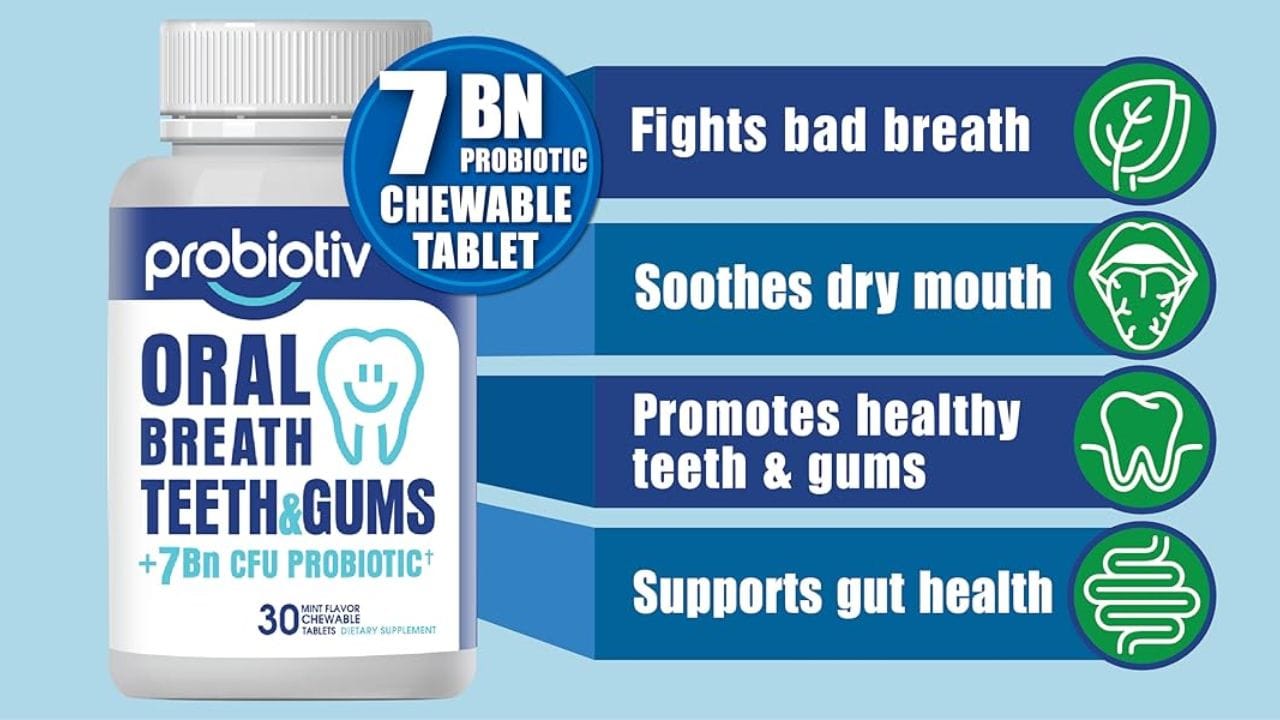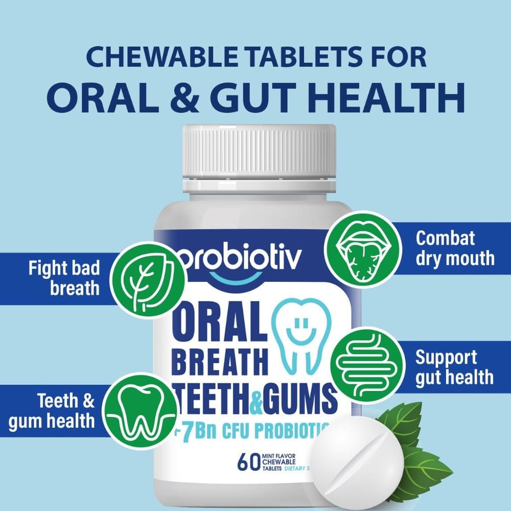 In addition to promoting fresh breath, Probiotiv Oral Probiotic supports a healthy oral microbiome, which is essential for preventing bad breath in the first place. By maintaining a balance of good bacteria, these oral probiotics help to keep the mouth healthy and free from the harmful bacteria that can cause bad breath and other oral health issues.