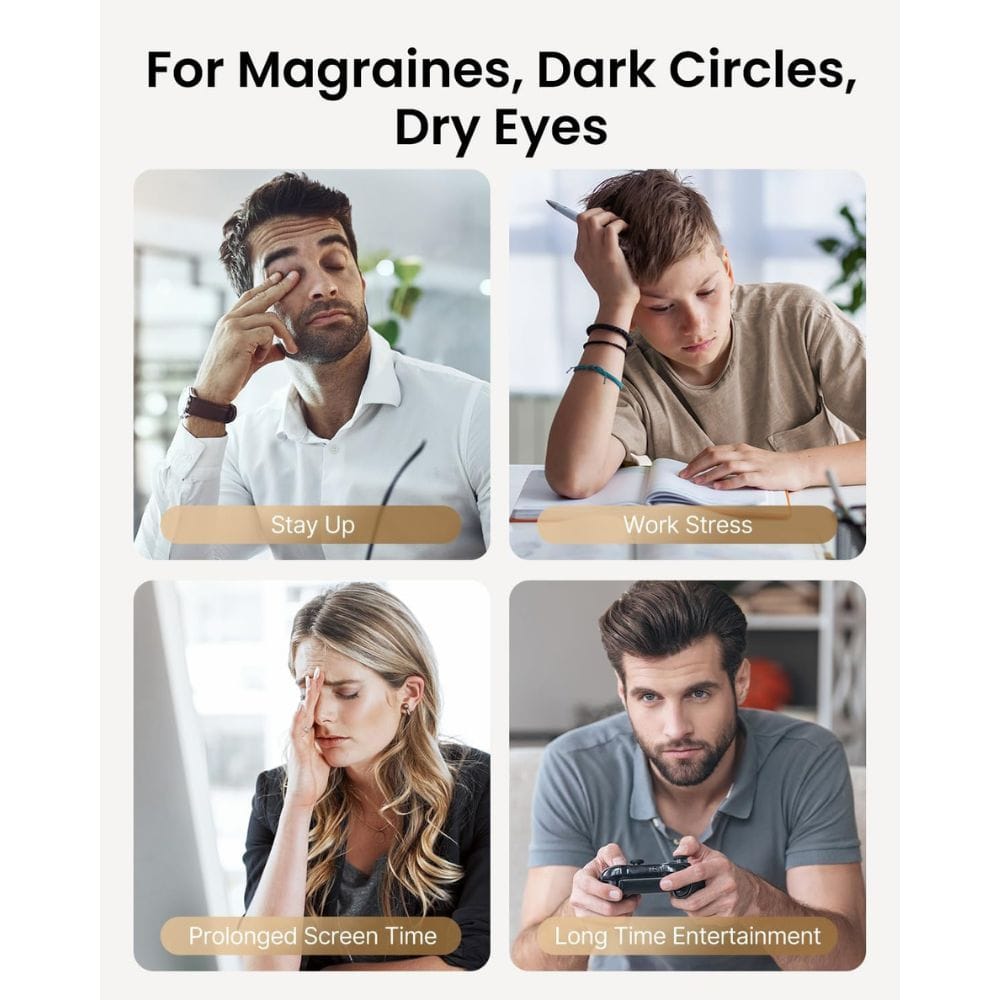 Dry eyes are a common complaint, especially for those who spend long hours in front of screens or in air-conditioned environments. The Renpho Eye Massager offers a targeted solution for this issue, combining innovative eye massager technology with a soothing cooling gel mask and adjustable heat levels. By gently massaging the eye area with air pressure and heat, the device helps stimulate natural tear production, providing much-needed relief for dry eyes. The cooling gel mask further enhances comfort, reducing eye strain, dark circles, and dull skin while promoting skin elasticity. Regular use of the Renpho Eye Massager not only alleviates discomfort but also supports overall eye health, making it an essential addition to your daily routine for refreshed, hydrated eyes and healthier-looking skin.