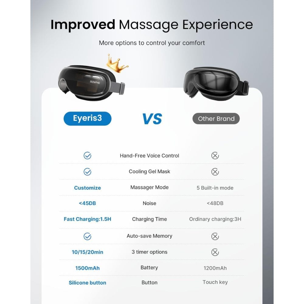 - The Renpho Eyeris 3 Eye Massager offers a blend of heat and cooling features, designed to alleviate eye fatigue and enhance relaxation.