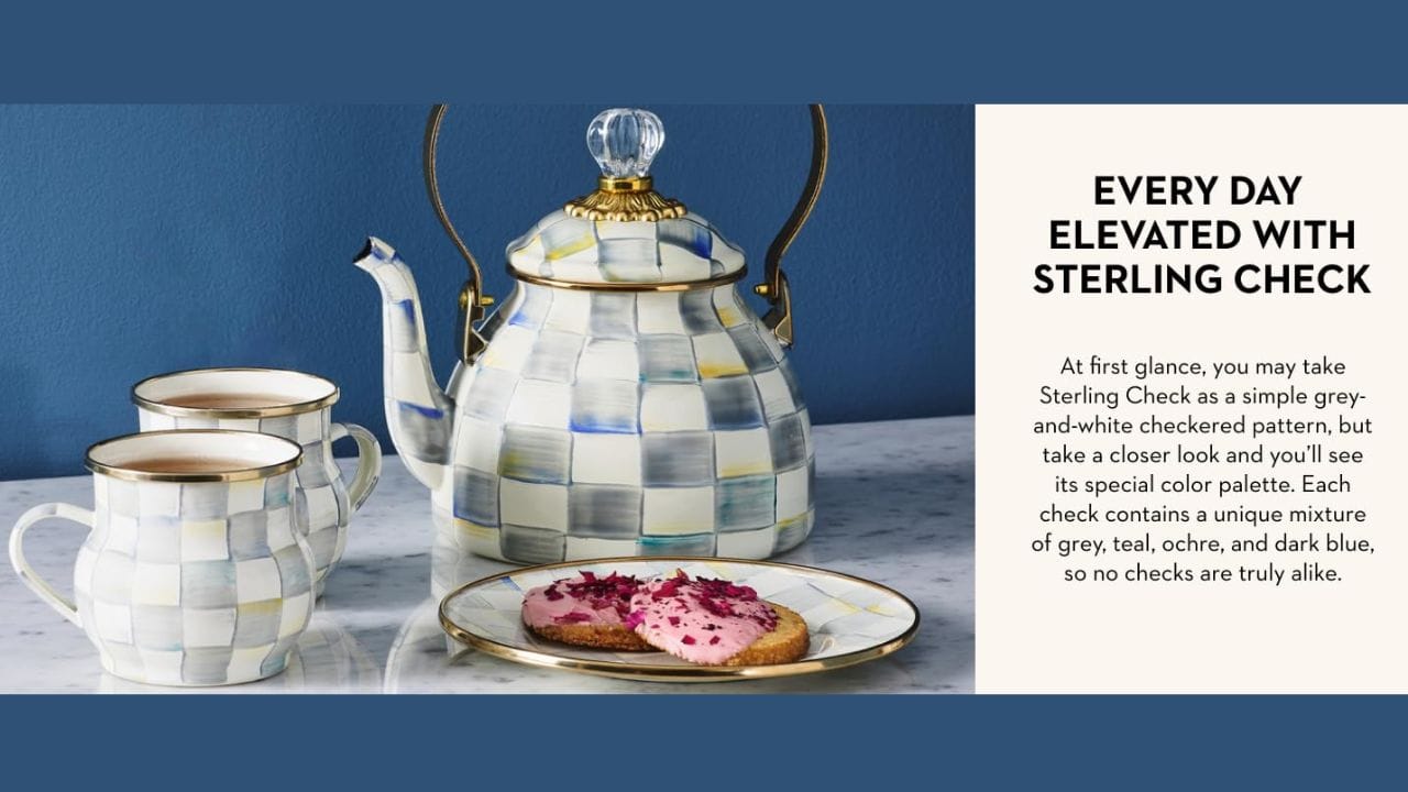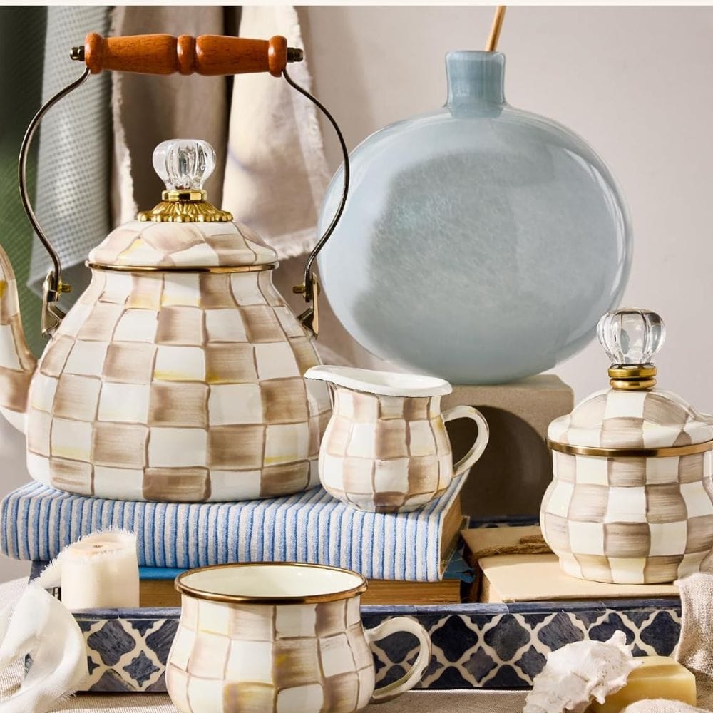 The Mackenzie-Childs enamel tea kettle is more than just a vessel for boiling water; it’s a statement piece that embodies the brand’s commitment to quality and style. Known for their distinctive designs, Mackenzie-Childs has crafted a tea kettle that stands out in any kitchen setting. As a check tea kettle, it serves as both a decorative and functional kitchen essential, making it an artful addition to your home. This review will delve into the features that make this tea kettle a standout choice for both functionality and aesthetics.