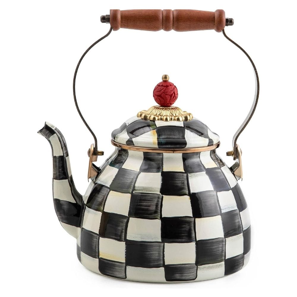 This pattern not only adds visual interest but also ties the kettle to the broader Mackenzie-Childs collection. Whether you're a long-time collector or new to the brand, the courtly checks are a recognizable and beloved feature. They add a touch of whimsy and sophistication, making the kettle a standout piece in any kitchen.