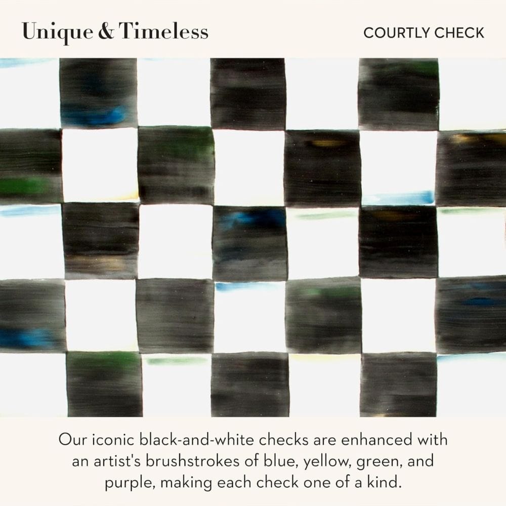 The Mackenzie-Childs style is characterized by its bold patterns, vibrant colors, and whimsical designs. The enamel tea kettle embodies these elements, making it a perfect representation of the brand's aesthetic. The hand-painted courtly checks are a signature feature, adding a playful yet sophisticated touch to the kettle.