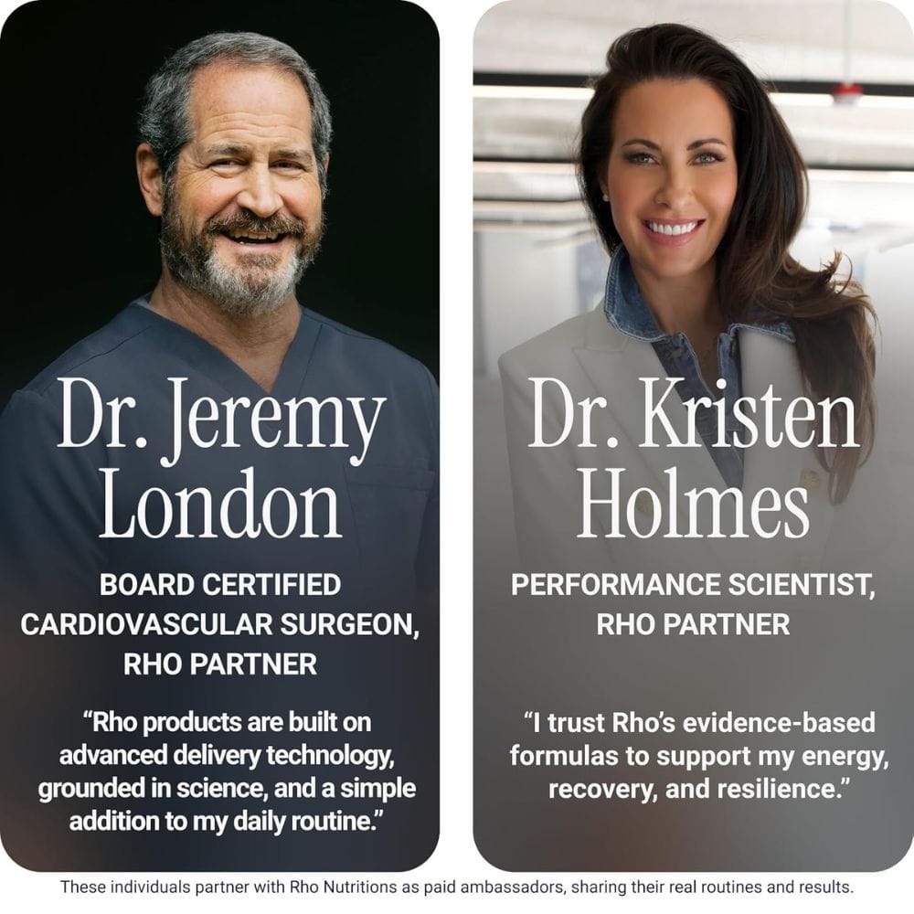 Additionally, experts such as Dr. Amy Shah MD—trained at Cornell, Harvard, and Columbia and known for her holistic approach to health and longevity—and Dr. Becky Campbell MD, a Functional Medicine Physician, endorse and are associated with Rho Nutrition, further reinforcing the brand's credibility and expertise.