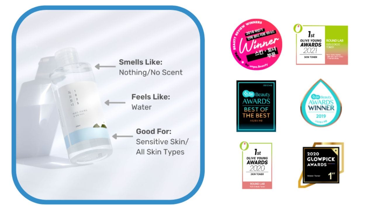 - The Round Lab 1025 Dokdo Toner is a gentle, hydrating toner that caters to various skin types, especially sensitive skin.