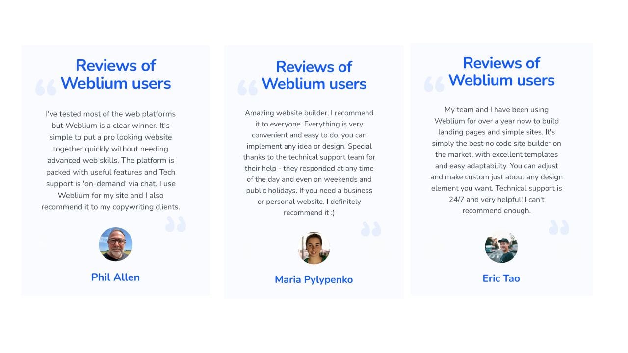 - Weblium's support system includes professional designers and a comprehensive knowledge base.