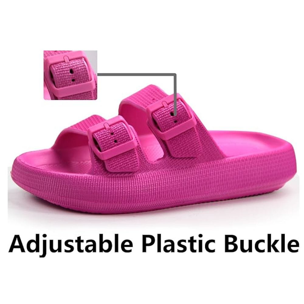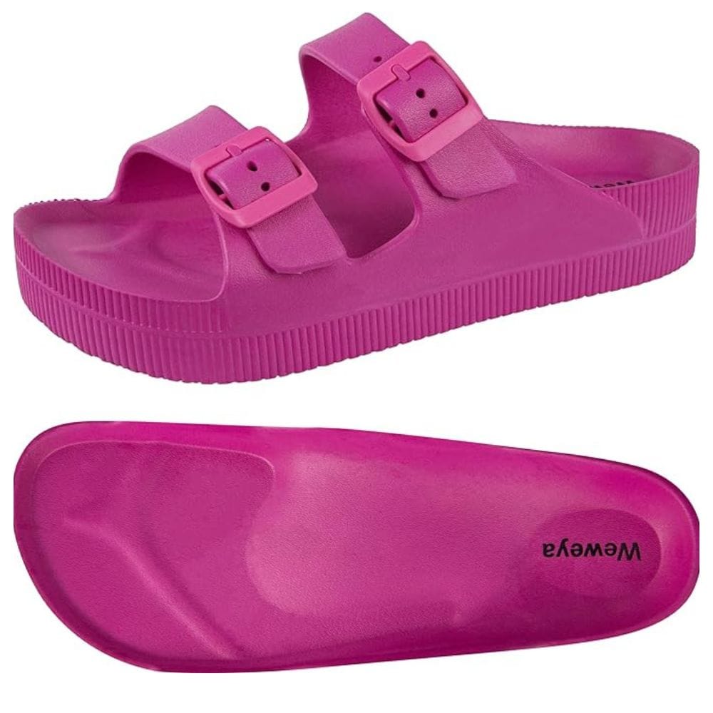 Weweya sandals boast a fashion-forward design that appeals to both men and women. The double buckle adjustable slides are not only functional but also add a touch of elegance to the overall look. Available in a variety of colors such as hot pink, blue, khaki, purple, and leopard, there's a pair to match every outfit and occasion.